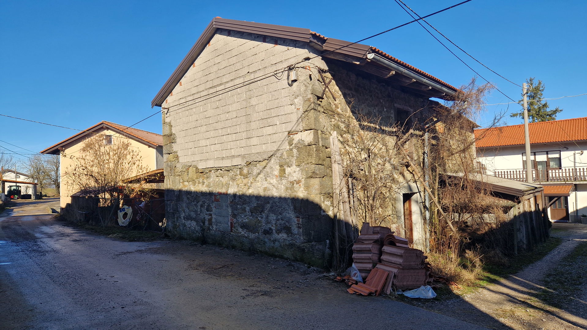 Na desni strani parcele se nahajata dva kamnita enonadstropna objekta, na levi pa manjši samostojni objekt, ki trenutno služi za spravilo ozimnice (2 × 28,65 m²). Vsi objekti so grajeni iz kamna in imajo obnovljeno streho, kar predstavlja odlično osnovo za nadaljnjo prenovo ali preureditev.