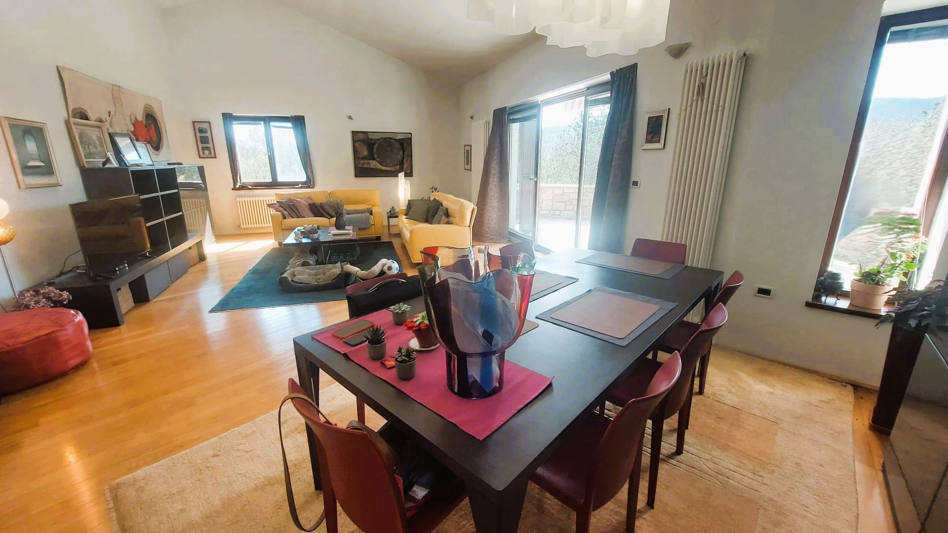 - Prostoren in svetel dnevni prostor z jedilnico in z izhodom na teraso in na lepo urejen vrt,