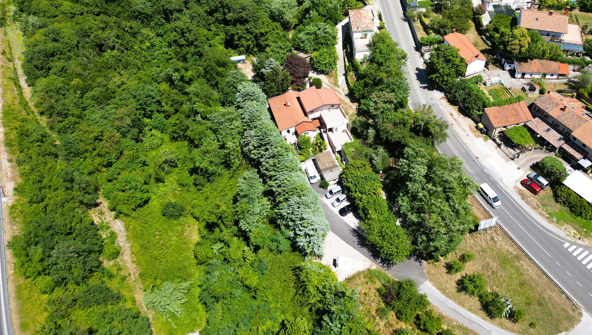 Hiša se nahaja na samem, kar zagotavlja popoln mir in zasebnost, hkrati pa je odlično povezana – v bližini avtoceste, šole, lekarne in trgovine.