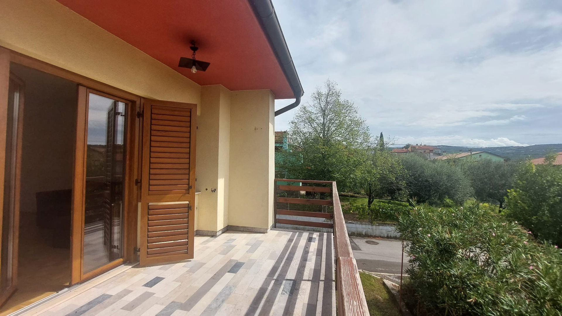 velika terasa z lepim razgledom na zeleno okolico